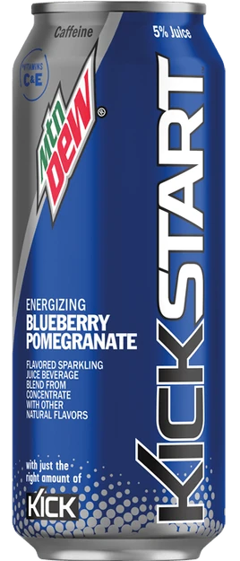 Kickstart Recharge (Energizing Blueberry Pomegranate) was a Blueberry Pomegranate flavor of Mountain Dew, having a very similar tasting flavor to that of 2021's Mountain Dew Energy (Pomegranate Blue Burst).