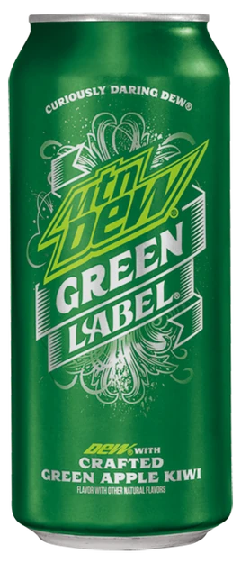 Mountain Dew Green Label was a Green Apple Kiwi flavor of Mountain Dew and was green in color, described as a "Curiously Daring Dew."